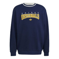 Men's adidas originals SCRIPT CREW Printing Sports Round Neck Navy Blue HF9224