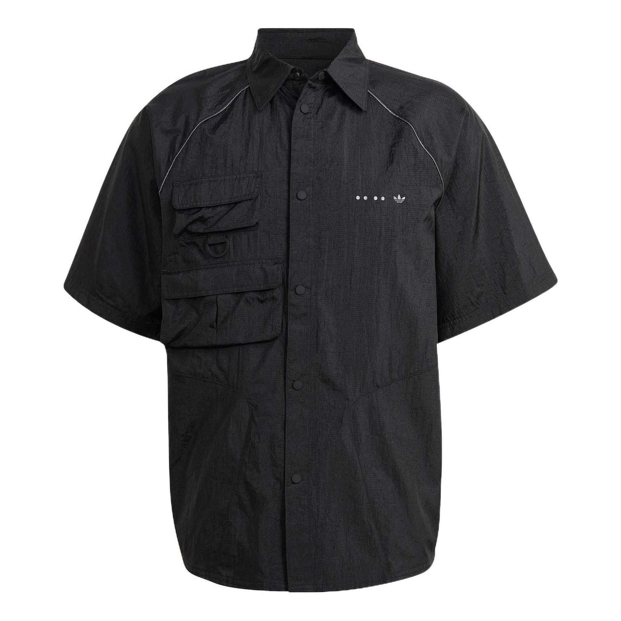 Men's adidas originals Solid Color Lapel Short Sleeve Black Shirt HK2733