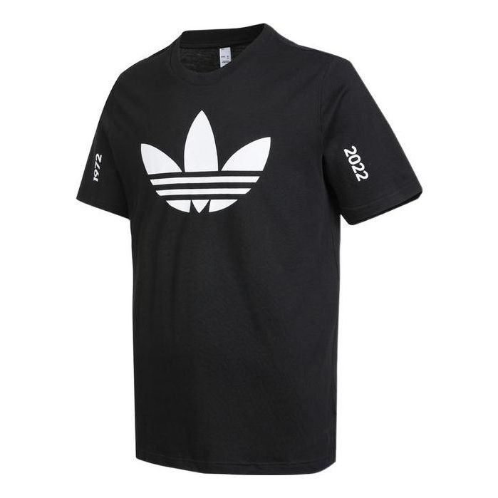 Men's adidas originals Trefoil C Tee1 Large Logo Round Neck Casual Short Sleeve Black T-Shirt HC7166