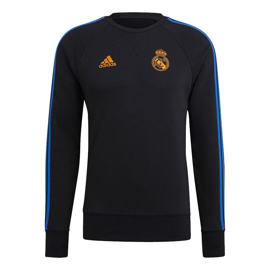Men's adidas Real Swt Top Woven Real Madrid Team Logo Soccer/Football Round Neck Sports Black GU9706