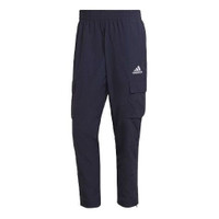 Men's adidas Solid Color Logo Cargo Pocket Casual Sports Pants/Trousers/Joggers Blue HE1860