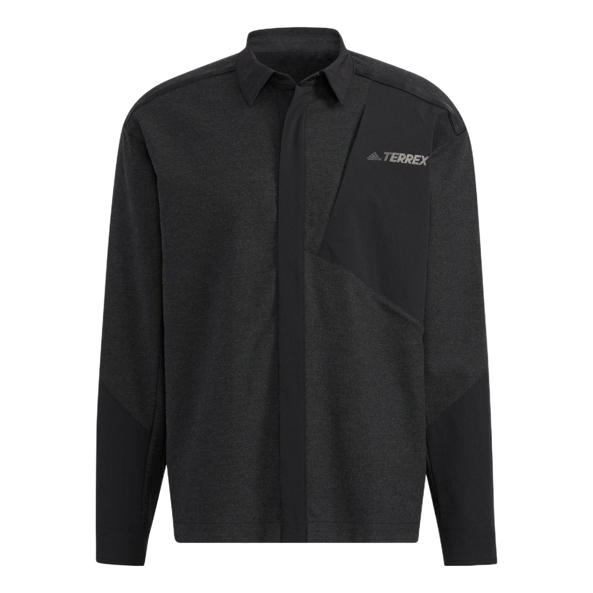 Men's adidas Terrex Voyg Ls s Solid Color Chest Zipper Pocket Detail Long Sleeves Black Shirt HN2038