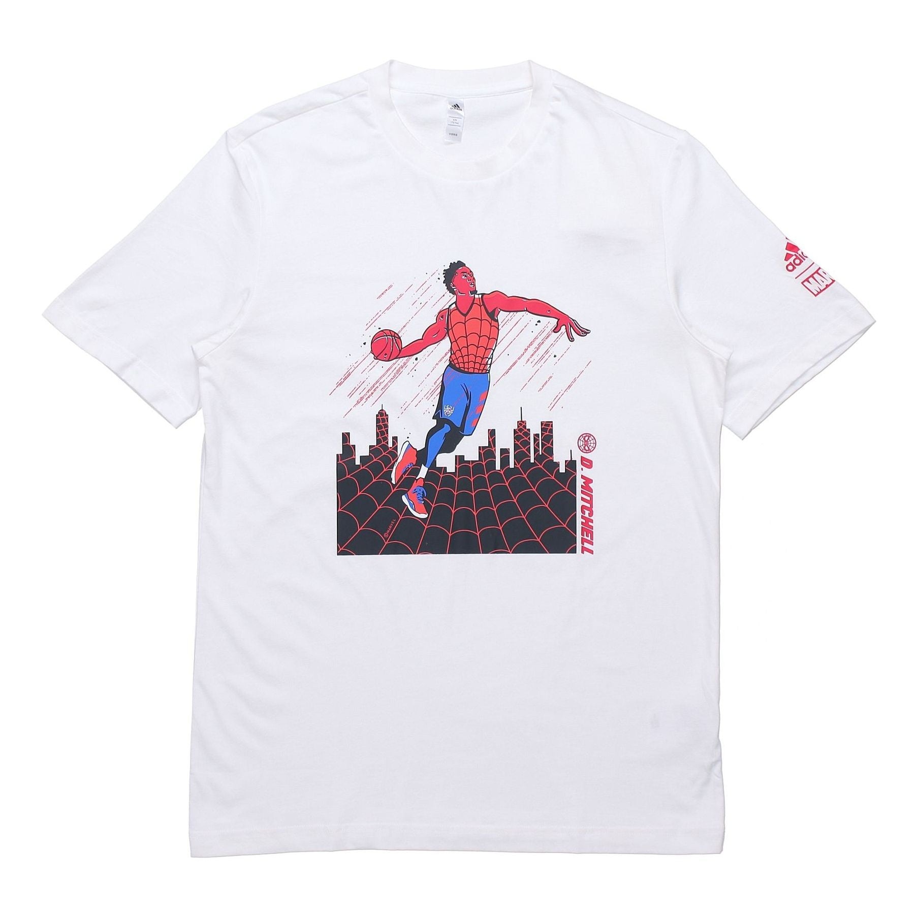 Men's adidas x MARVEL/ MARVEL Dm Spiderman 1 Printing Basketball Sports Round Neck Short Sleeve Whit