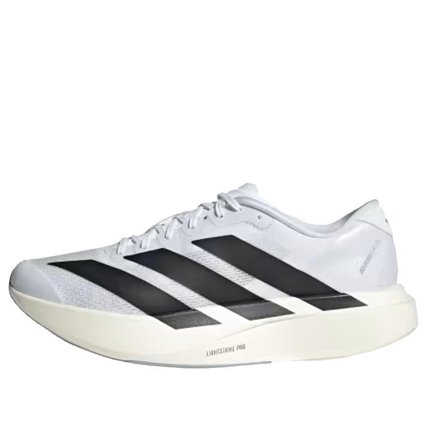 PRODUCT INFORMATION Model No: JH6208 Closure: Lacing Release Date: 2024-10-25 Upper Material: Textile Thickness: Regular Sole Colorway: Cloud White/Core Black/Cloud White Toe Type: Round Toe Upper: Low Top Sole Material: Rubber Sole Color: white Series: Adizero Nickname: White Black Occasion: running