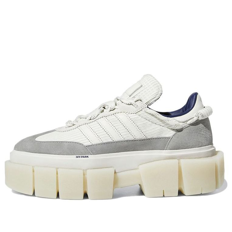 PRODUCT INFORMATION MODEL NO: GX9400 RELEASE DATE: 2021-12-08 SERIES: Ivy Park NICKNAME: Halls Of Ivy STYLE: Sports/Street Style/Trendy SEASON: All Season CLOSURE: Lacing SOLE MATERIAL: Rubber Sole TOE TYPE: Round Toe HEEL TYPE: Thick bottom COLOR WAY: Gray/White DESCRIPTION Introducing the Ivy Park x adidas Super Sleek Chunky 'Halls of Ivy' from the fifth collaborative collection between athleisure brand Ivy Park and adidas Originals. This fashion-forward take on the classic adidas Samba features an off-white corduroy upper with tonal leather three-stripes and grey premium suede overlays. Details include mismatched Ivy Park and adidas tongue tags, a navy leather-lined interior, and coiled bungee detailing at the heel. The low-profile design up top is offset by a chunky platform sole unit with segmented sidewalls, giving you a trendy look that's sure to turn heads.