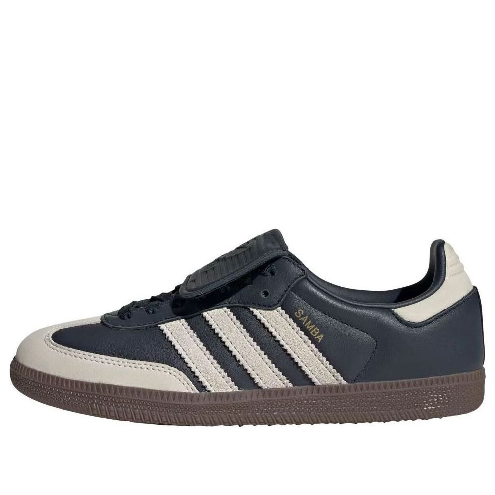 PRODUCT INFORMATION Model No: JH5705 Closure: Lacing Release Date: 2024-12-06 Upper Material: Leather Thickness: Regular Sole Colorway: Aurora Ink/Cream White/Gold Metallic Toe Type: Round Toe Upper: Low Top Sole Material: Rubber Sole Color: navy Series: Samba Nickname: Aurora Ink White Gold Occasion: lifestyle