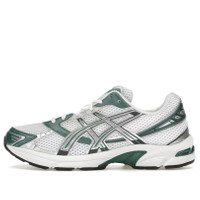 PRODUCT INFORMATION Model No: 1201A256-121 Closure: Lacing Release Date: 2024-04-24 Upper Material: Leather Thickness: Regular Sole Colorway: White/Silver/Green Toe Type: Round Toe Upper: Low top Sole Material: Rubber Sole Color: white Series: Gel-1130 Nickname: White Dark Neptune Occasion: lifestyle The ASICS Gel-1130 Dark Neptune is a stability running shoe inspired by classic ASICS designs. Featuring a white base with Dark Neptune and silver accents, this shoe boasts responsive GEL cushioning in the heel and protective padding. The airy mesh upper is accented by synthetic leather overlays, giving it a modern look. The "GEL" lettering wrapping around the heel overlays adds a unique touch.