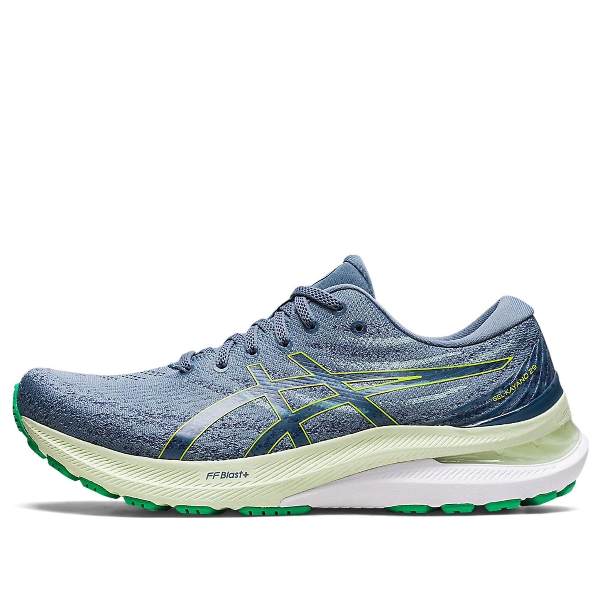 PRODUCT INFORMATION Model No: 1011B440-403 Closure: Lacing Release Date: 2023-09-24 Thickness: Regular Sole Colorway: Steel Blue/Lime Zest Heel Type: Flat heel Toe Type: Round Toe Upper: Low Top Color: blue Series: Gel-Kayano Sub Series: Gel-Kayano 29 Nickname: Steel Blue Lime Zest Occasion: running
