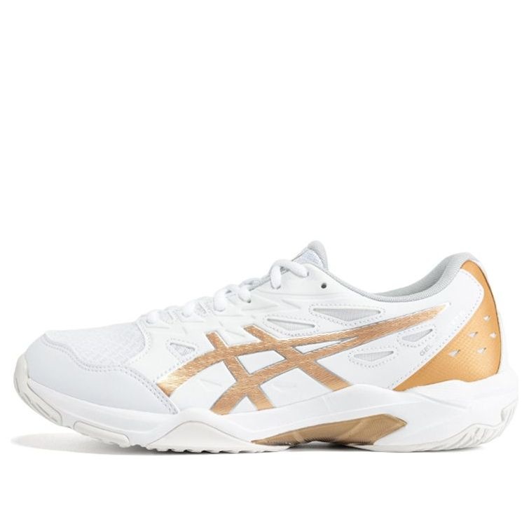 PRODUCT INFORMATION Model No: 1071A106-100 Closure: Lacing Release Date: 2024-10-30 Thickness: Regular Sole Colorway: White/Gold Heel Type: Flat heel Toe Type: Round Toe Upper: Low Top Sole Material: Rubber Sole Color: white Series: Gel-Rocket Sub Series: Gel-Rocket 11 Nickname: White Gold Occasion: volleyball