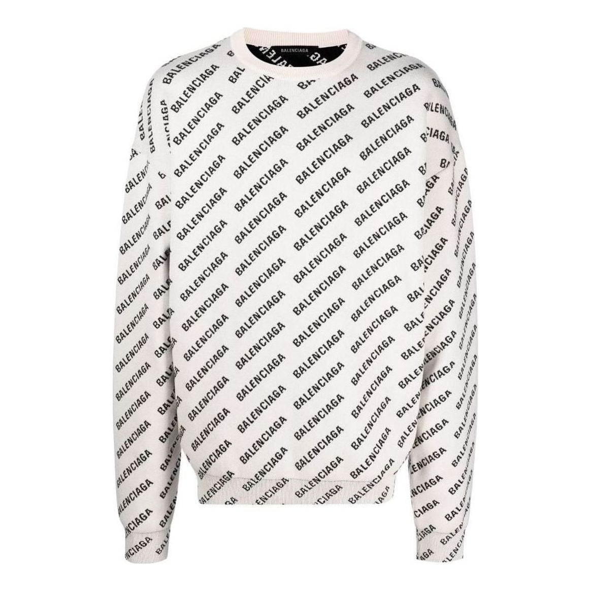 Balenciaga All Over Logo Crewneck Sweater 'White Black' 702952T32339054