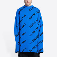Balenciaga All Over Logo Crewneck Wool Knit Sweater 'Blue' 657400T15673964