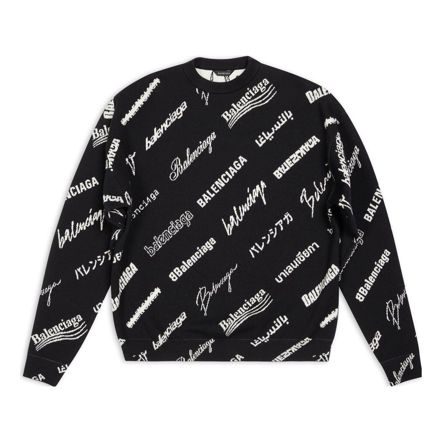 Balenciaga Allover Logo Print Crewneck Sweatshirt 'Black White' 724858T16651070
