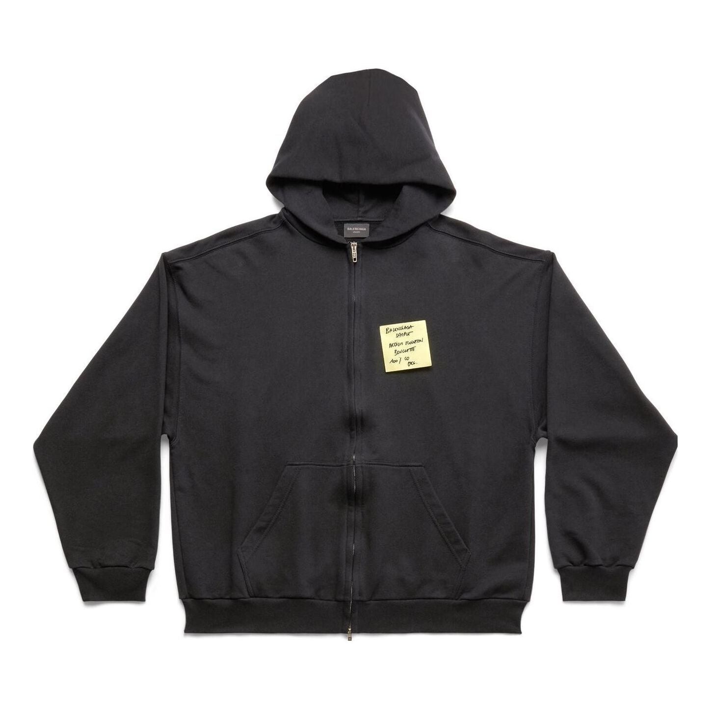 Balenciaga Sticky Note Zip-Up Hoodie Medium Fit 'Black Faded' 744457TOVD31055