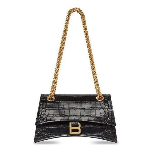 (WMNS) Balenciaga Crush Small Chain Bag Crocodile Embossed 'Black' 716351210IX1000