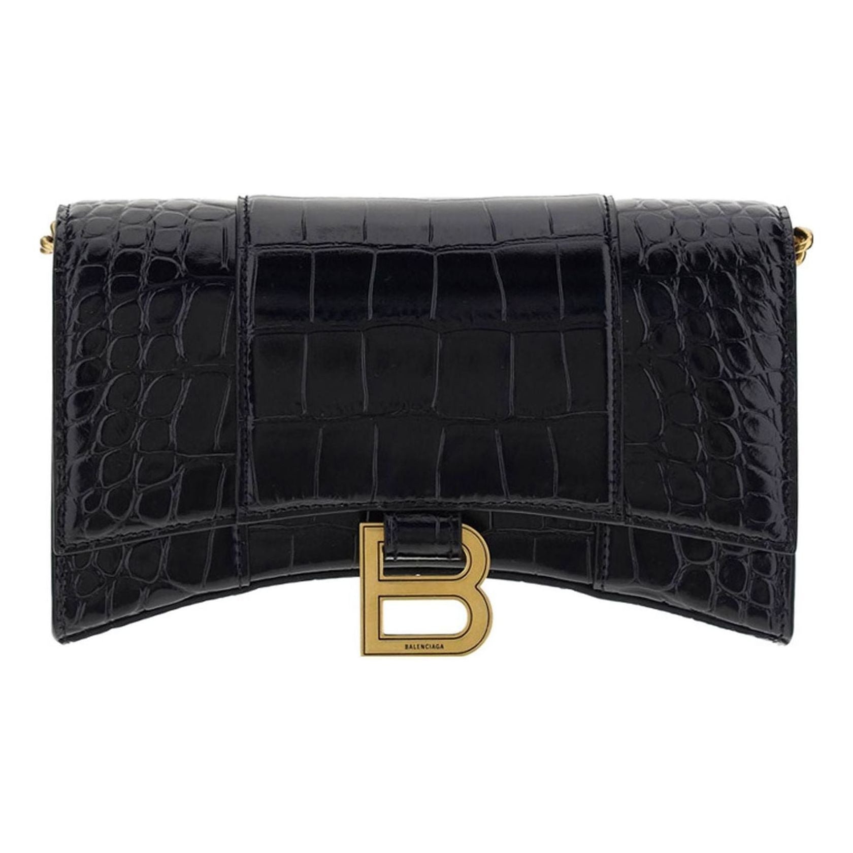(WMNS) Balenciaga Hourglass Wallet On Chain Crocodile Embossed 'Black' 6560501LRGM1000