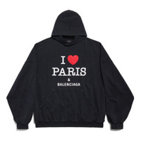(WMNS) Balenciaga I Love Paris Balenciaga Hoodie Large Fit 'Black Faded' 803265TRVM61041