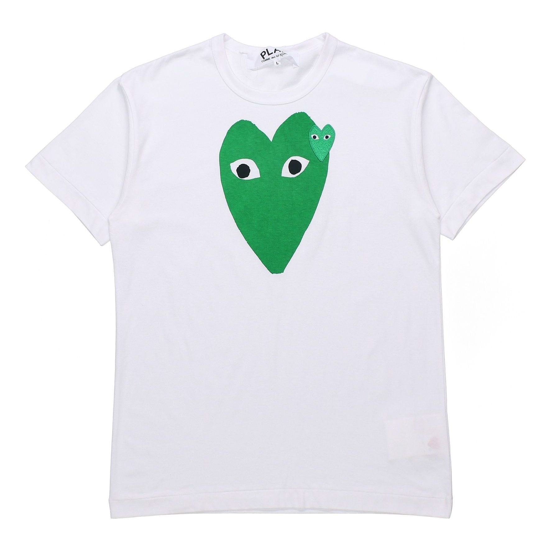 COMME des GARCONS PLAY GreenHeart Shaped Printing Short Sleeve White AZ-T060-051-1