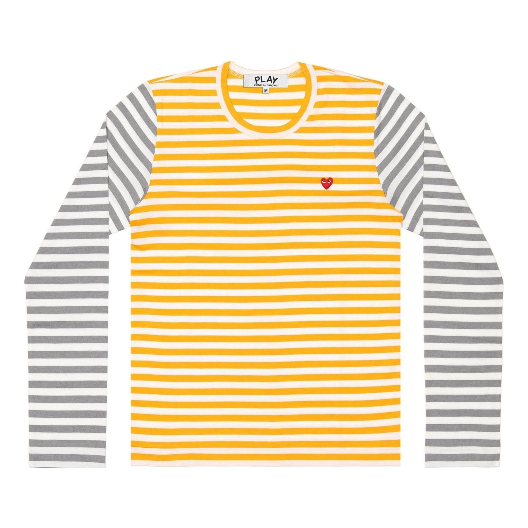 COMME des GARCONS PLAY L/S Bi-Colour Striped Small Emblem T-Shirt 'Yellow Grey' AZ-T318-051-2