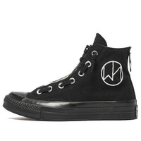 PRODUCT INFORMATION Model No: 164831C Closure: Lacing Release Date: 2019-03-15 Style: Street Style Colorway: Black Heel Type: Flat heel Toe Type: Round Toe Sole Material: Rubber Sole Season: All Season Color: black Series: Chuck 70 Sub Series: Chuck 70 High Nickname: The New Warriors - Black Occasion: lifestyle The ever-iconic Chuck 70 gets a high-fashion makeover with this Undercover x Converse collab. The all-black canvas upper is taken to the next level with oversized midfoot zippers and metal ring ornaments, while an embroidered ‘NW’ patch and ‘The New Warriors’ text on the toe cap drive home the punk-inspired look.