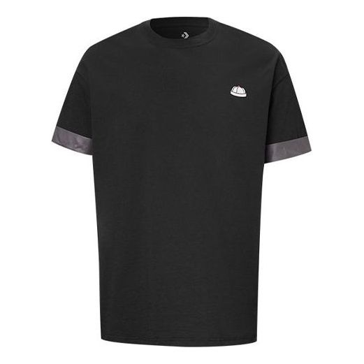 Men's Converse City Short Sleeve Tee Cuff Contrasting Colors Sports Round Neck Black 10020858-A02