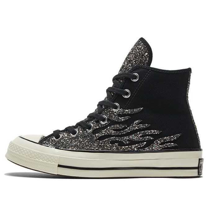 PRODUCT INFORMATION MODEL NO: 569387C RELEASE DATE: 2020-10-30 SERIES: Chuck 70 NICKNAME: Archival Glitter Flame - Black Egret STYLE: Trendy/Street Style SEASON: All Season UPPER MATERIAL: Canvas CLOSURE: Lacing SOLE MATERIAL: Rubber Sole TOE TYPE: Round Toe HEEL TYPE: Flat heel COLOR WAY: Black