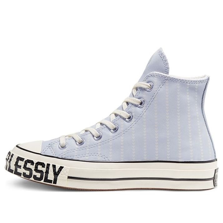 PRODUCT INFORMATION Model No: 567152C Closure: Lacing Release Date: 2020-08-27 Upper Material: Canvas Style: Trendy Colorway: Light Blue Heel Type: Flat heel Toe Type: Round Toe Sole Material: Rubber Sole Season: All Season Color: GREY Series: Chuck 70 Sub Series: Chuck 70 High Nickname: Love Fearlessly Occasion: lifestyle