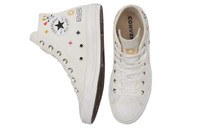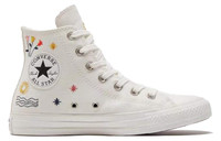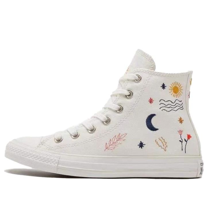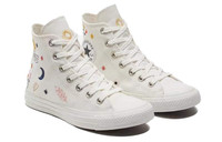 PRODUCT INFORMATION Model No: 571079C Closure: Lacing Release Date: 2021-02-16 Upper Material: Canvas Style: Trendy/Street Style Colorway: Ivory Heel Type: Flat heel Toe Type: Round Toe Sole Material: Rubber Sole Functionality: Slip-resistant/Wearable Season: All Season Color: CREAM Series: Chuck Taylor Nickname: It's Okay To Wander Occasion: lifestyle The Wmns Chuck Taylor All Star High "It"s Okay To Wander" brings a series of unique graphics to its classic construction. The shoe"s upper appears in off-white, highlighted by various designs connected to the message on the inside of the tongue, which states that "It"s okay to wander from yourself to the world." Chrome eyelets secure the lacing system, while underfoot, a rubber midsole anchors the build.