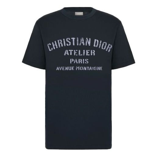 Men's DIOR Knit Round Neck Short Sleeve Navy Blue 043J615A0589-C589