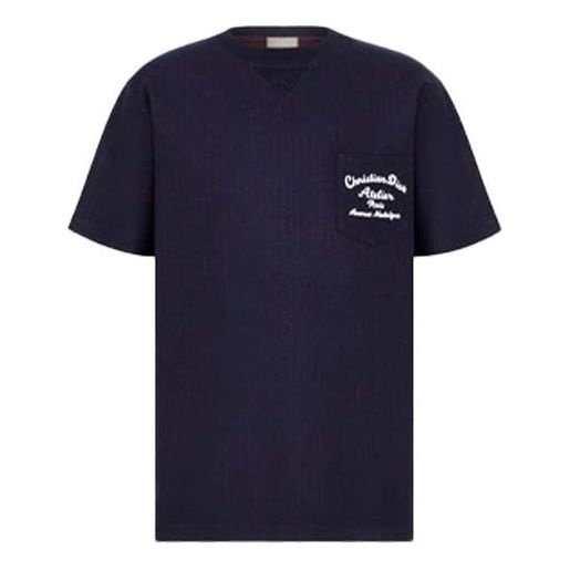 Men's DIOR SS22 Embroidered Plain Weave Knit Short Sleeve Navy Blue T-Shirt 213J637A0739-C583
