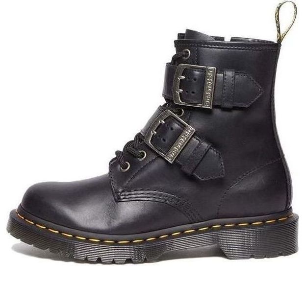 Dr.Martens 1460 Buckle Pull Up Leather Lace Up Boots 'Black Silver' 31033001