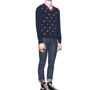 Gucci Bee Print V-Neck Sweater For Men Navy 431749-X1311-4696