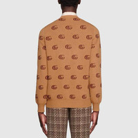 Gucci Double G Jacquard Wool V-Neck Sweater 'Camel Brown' 645292-XKBPF-8011