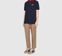 Gucci GG Logo Embroidered Contrasting Colors Short Sleeve Polo Shirt Navy Blue 574086-XJA6C-4062
