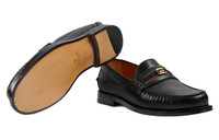 Gucci loafer with Interlocking G Green and Red Web 'Black Leather' 644724-17X10-1060