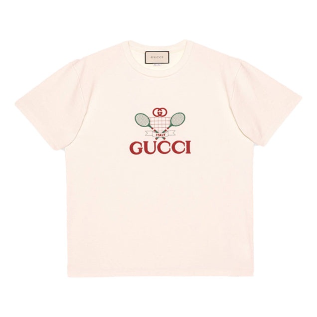 Gucci Men's Tennis Printed Oversized Retro Short Sleeve White 548334-XJBLE-7136