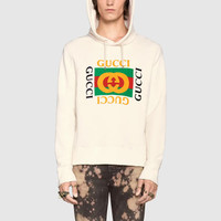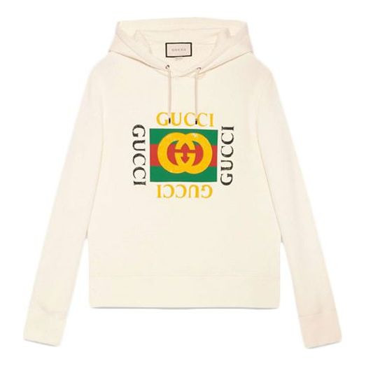 Gucci Vintage Double Ring Logo Printed Hooded Drawstring Sweatshirt Men's White 454585-X5J57-9541