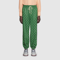 Men's Gucci FW21 Webbing Logo Full Print Plain Weave Knit Jogging Sports Pants/Trousers/Joggers Gree