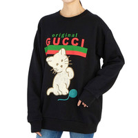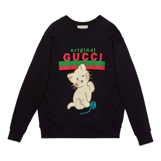 (WMNS) Gucci Cat Logo Printing Pullover Black 617964-XJCRU-1082