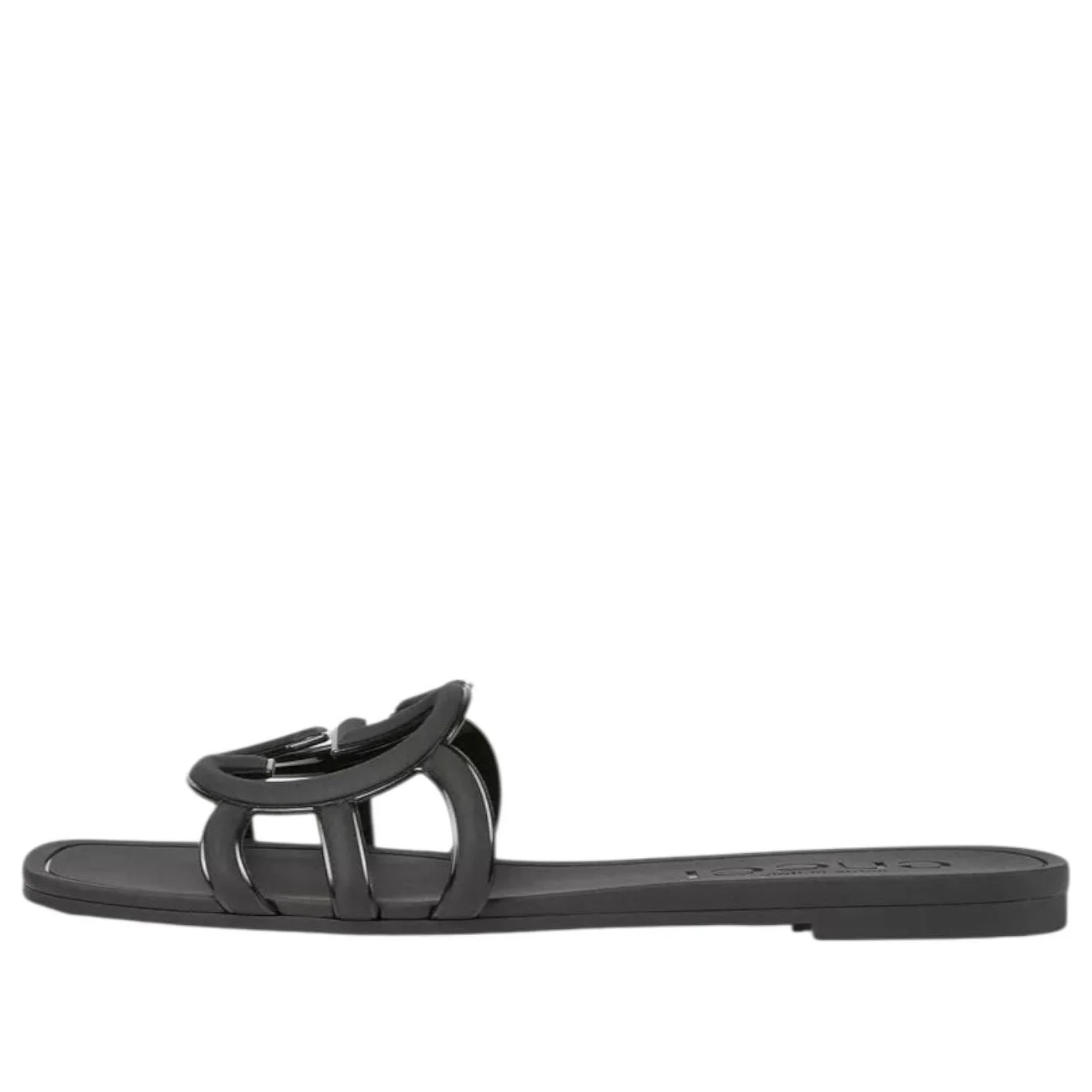PRODUCT INFORMATION Model No: 780307-J8700-1000 Closure: Tieless Release Date: 2025-11-12 Upper Material: Rubber Thickness: Regular Sole Colorway: Black Toe Type: Round Toe Upper: Low Top Sole Material: Rubber Sole Color: black Series: Slide Sandal Nickname: Black Rubber Occasion: lifestyle Part of the Gucci Lido Pre-Fall collection, this slide sandal is inspired by the summer spirit and beach clubs of the Italian coast. It is crafted from black rubber, featuring an Interlocking G cut-out that enriches the style with a distinct logo feel. This piece reinterprets the House's emblematic codes in a contemporary way, offering a refined, casual look.