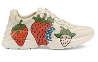 PRODUCT INFORMATION Model No: 576963-DRW00-9522 Closure: Lacing Release Date: 2021-07-27 Upper Material: Leather Thickness: Regular Sole Colorway: White Toe Type: Round Toe Upper: Low Top Sole Material: Rubber Sole Color: white Series: Rhyton Nickname: Gucci Strawberry Occasion: lifestyle