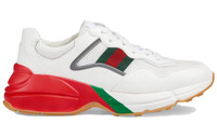 PRODUCT INFORMATION Model No: 645771-2H060-9088 Closure: Lacing Release Date: 2023-09-24 Upper Material: Leather Thickness: Regular Sole Colorway: White Red Green Reflective Toe Type: Round Toe Upper: Low Top Sole Material: Rubber Sole Color: white Series: Rhyton Occasion: lifestyle