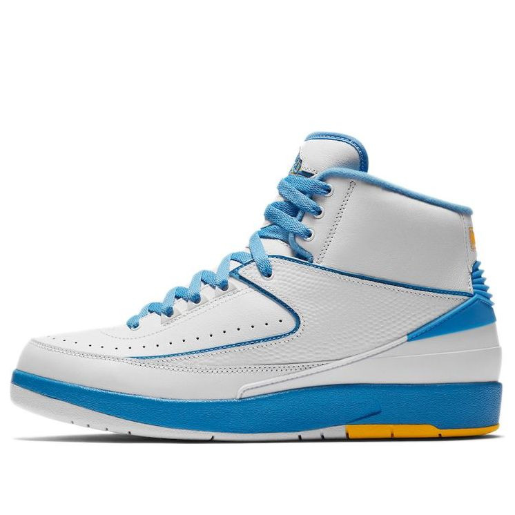 PRODUCT INFORMATION MODEL NO: 385475-122 RELEASE DATE: 2018-06-08 SERIES: Air Jordan 2 NICKNAME: Melo STYLE: Sports SEASON: All Season DESIGNER: Bruce Kilgore UPPER MATERIAL: Leather CLOSURE: Lacing SOLE MATERIAL: Rubber Sole UPPER: High top TOE TYPE: Round Toe COLOR WAY: White/Varsity Maize/University Blue