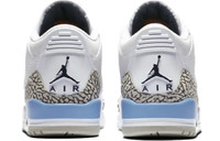 PRODUCT INFORMATION Model No: CT8532-104 Closure: Lacing Release Date: 2020-03-06 Upper Material: Leather Thickness: Regular Sole Style: Retro Colorway: White/Valor Blue/Tech Grey Heel Type: Flat heel Toe Type: Round Toe Upper: High Top Sole Material: Rubber Sole Season: All Season Color: blue Series: Air Jordan 3 Nickname: UNC Occasion: lifestyle This year, Michael Jordan's alma mater, UNC, will be getting its own special Air Jordan 3 Retro. The shoe will feature dual-textured leather on the upper in UNC's signature colors of blue and white. The eye stays and elephant print panels will also be done in UNC's colors. And of course, the Jumpman logos on the tongue and heel will be in UNC's Valor Blue. The shoe will be completed with a visible Air unit in the midsole and a rubber outsole.