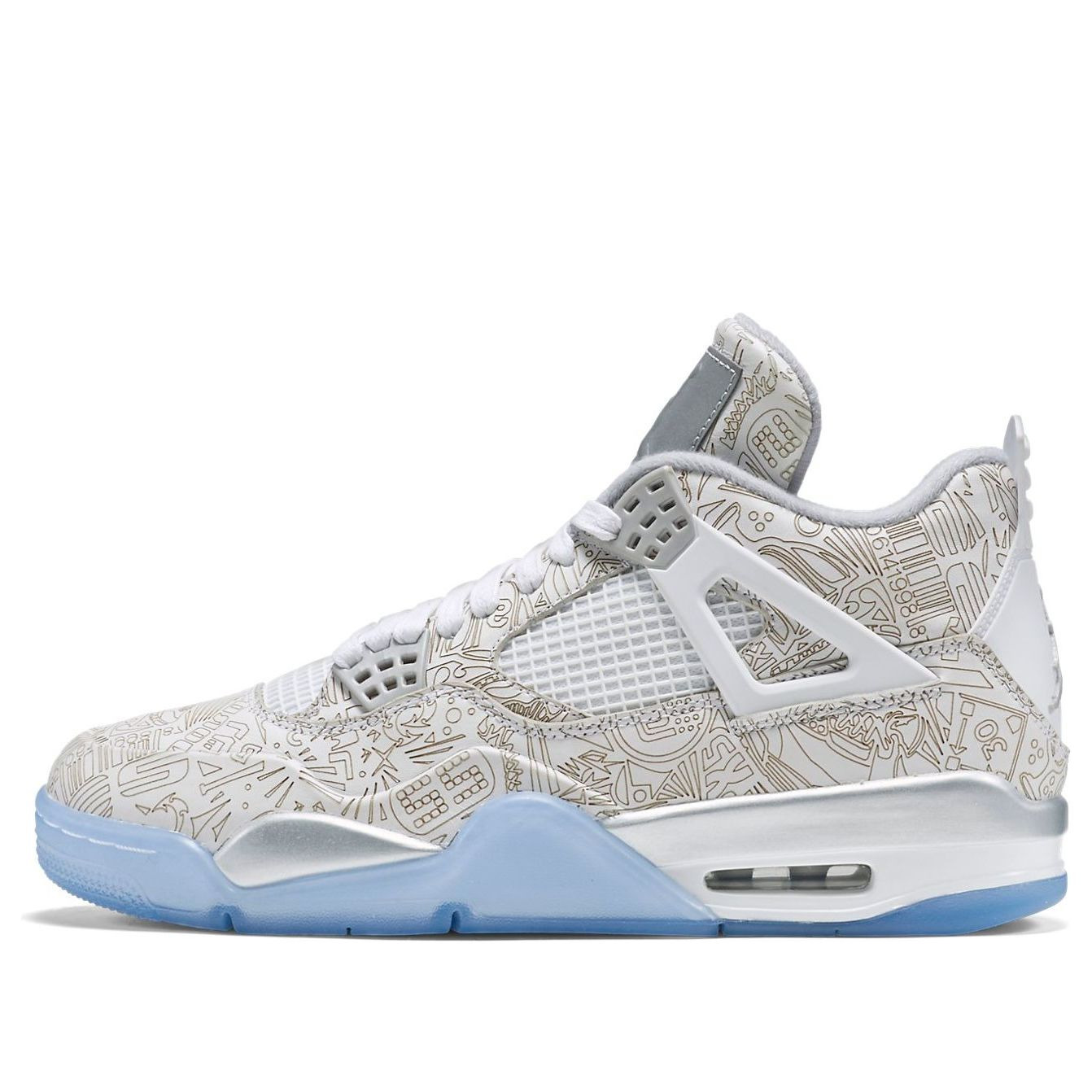 PRODUCT INFORMATION MODEL NO: 705333-105 RELEASE DATE: 2015-02-12 SERIES: Air Jordan 4 NICKNAME: Laser STYLE: Sports SEASON: All Season DESIGNER: Tinker Hatfield SOLE MATERIAL: Rubber Sole TOE TYPE: Round Toe HEEL TYPE: Flat heel COLOR WAY: White/Chrome-Metallic Silver