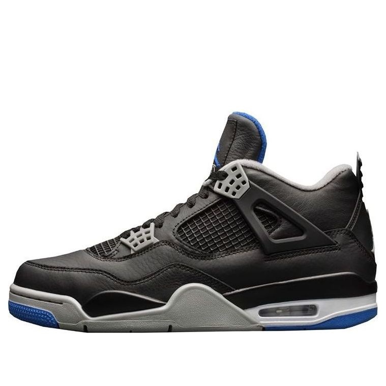 PRODUCT INFORMATION MODEL NO: 308497-006 RELEASE DATE: 2017-06-16 SERIES: Air Jordan 4 NICKNAME: Motorsports Alternate STYLE: Sports SEASON: All Season DESIGNER: Tinker Hatfield SOLE MATERIAL: Rubber Sole TOE TYPE: Round Toe HEEL TYPE: Flat heel COLOR WAY: Black/Game Royal/White