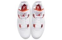 PRODUCT INFORMATION Model No: CT8527-118 Closure: Lacing Release Date: 2020-05-13 Upper Material: Leather Thickness: Regular Sole Style: Retro Colorway: White/Total Orange/Metallic Silver Heel Type: Flat heel Toe Type: Round Toe Upper: High Top Sole Material: Rubber Sole Functionality: Cushioning/Slip-resistant/Wearable Season: All Season Color: white Series: Air Jordan 4 Nickname: Orange Metallic Occasion: lifestyle If you're looking for something simplistic yet timeless, look no further as the Nike Air Jordan 4 Retro Metallic Pack has got you covered. Dressed in all white, the upper is constructed with leather and grid mesh. Underneath is a white rubber sole. Touches of Total Orange grace the eyelets, heel, tongue and sole.