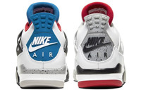 PRODUCT INFORMATION MODEL NO: CI1184-146 RELEASE DATE: 2019-11-22 SERIES: Air Jordan 4 NICKNAME: What The 4 STYLE: Street Style, Sports, Trendy DESIGNER: Tinker Hatfield TOE TYPE: Round Toe HEEL TYPE: Flat heel COLOR WAY: White/Military Blue-Fire Red-Tech Grey