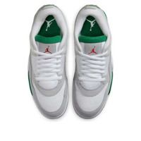 PRODUCT INFORMATION Model No: FQ7939-103 Closure: Lacing Release Date: 2025-02-01 Upper Material: Leather Thickness: Regular Sole Colorway: White/Pine Green/Neutral Grey/Wolf Grey/Varsity Red/Gum Dark Brown Toe Type: Round Toe Upper: Low Top Sole Material: Rubber Sole Color: white Series: Air Jordan 4 Sub Series: Air Jordan 4RM Nickname: Pine Green Occasion: lifestyle The Air Jordan 4 RM "Pine Green" drops Spring 2025. This low-top version, following the successful Nigel Sylvester collab, features a white upper, grey suede mudguard, and pine green accents on the midsole, tongue, and heel branding. A gum outsole completes the design, reminiscent of the popular Nike SB x Air Jordan 4.