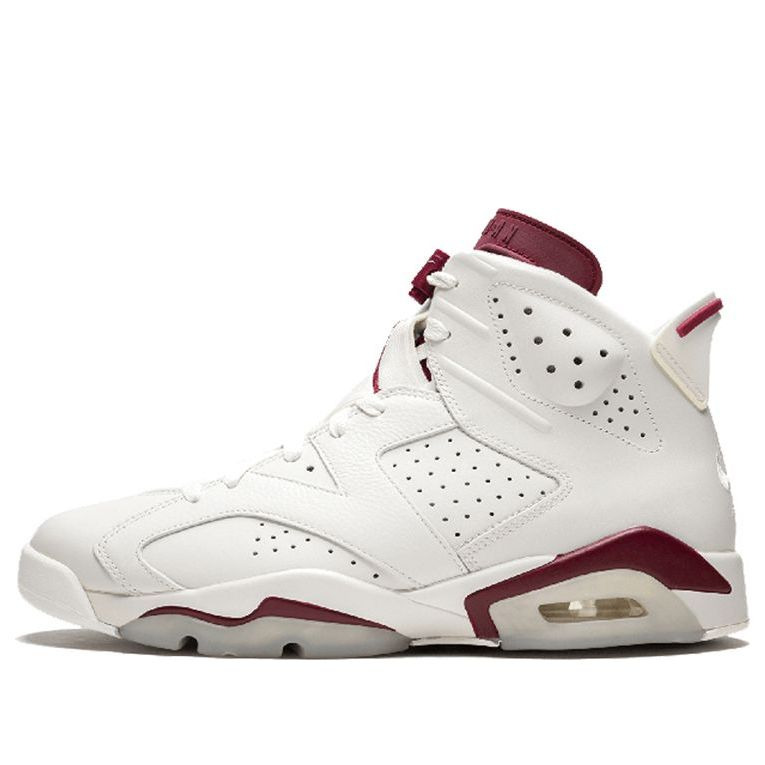 PRODUCT INFORMATION MODEL NO: 384664-116 RELEASE DATE: 2015-12-04 SERIES: Air Jordan 6 NICKNAME: Maroon SEASON: All Season DESIGNER: Tinker Hatfield SOLE MATERIAL: Rubber Sole TOE TYPE: Round Toe HEEL TYPE: Thick bottom COLOR WAY: Off White/New Maroon