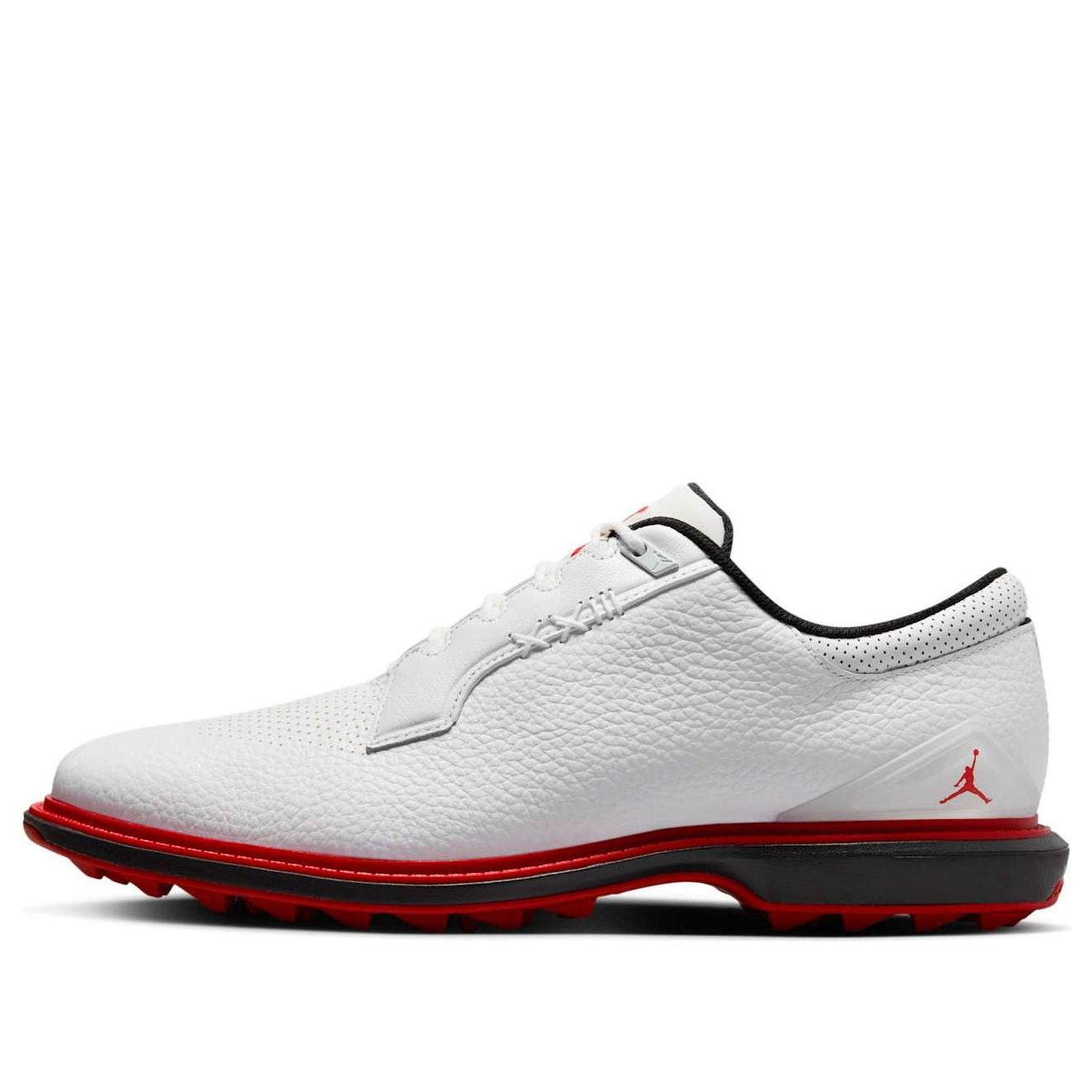PRODUCT INFORMATION Model No: FQ6642-103 Closure: Lacing Release Date: 2024-12-24 Upper Material: Leather Thickness: Regular Sole Colorway: White/Black/Red Toe Type: Round Toe Upper: Low Top Sole Material: Rubber Sole Color: white Series: ADG Sub Series: ADG 5 Nickname: White Red Occasion: golf